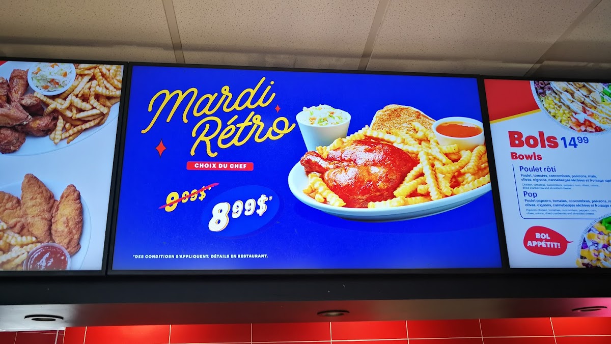 The menu showcases an array of rotisserie chicken options, each lovingly crafted to cater to diverse taste buds. Many patrons, like Pablo Escobar and T T.L, have described their visits as both friendly and satisfying, highlighting the warm ambiance where one can enjoy a peaceful meal. The opportunity to pair your savory chicken with delectable desserts from the nearby Second Cup adds an extra layer of enjoyment to your dining experience.